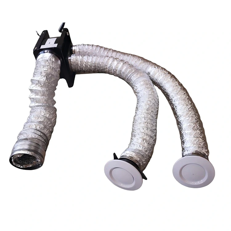 Tämän 2 sisääntulon 1 ulostulon hiljaisen tasavirtapuhaltimen kaksoistulon + yhden ulostulon rakenne voi poistaa ilmaa kahteen itsenäiseen tilaan samanaikaisesti, mikä muodostaa tasaisemman ilmankierron, mikä parantaa merkittävästi ilmanvaihdon tehokkuutta. Yksi yksikkö korvaa kaksi yksittäistä yksikköä, mikä säästää huomattavasti kattoasennustilaa.