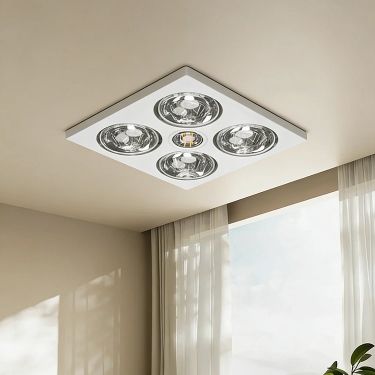 Tämä infrapunalämmitin, jossa on 4 lämmityslamppua, on erittäin kustannustehokas integroitujen toimintojen ansiosta. Siinä yhdistyvät kolme ydinominaisuutta: lämmitys, valaistus ja ilmanvaihto. Yksi yksikkö täyttää kaikki olennaiset kylpyhuonetarpeet, mikä säästää sekä tilaa että asennuskustannuksia. Se on yleensä edullisempi kuin tuulettimella toimivat kylpyhuonelämmittimet.