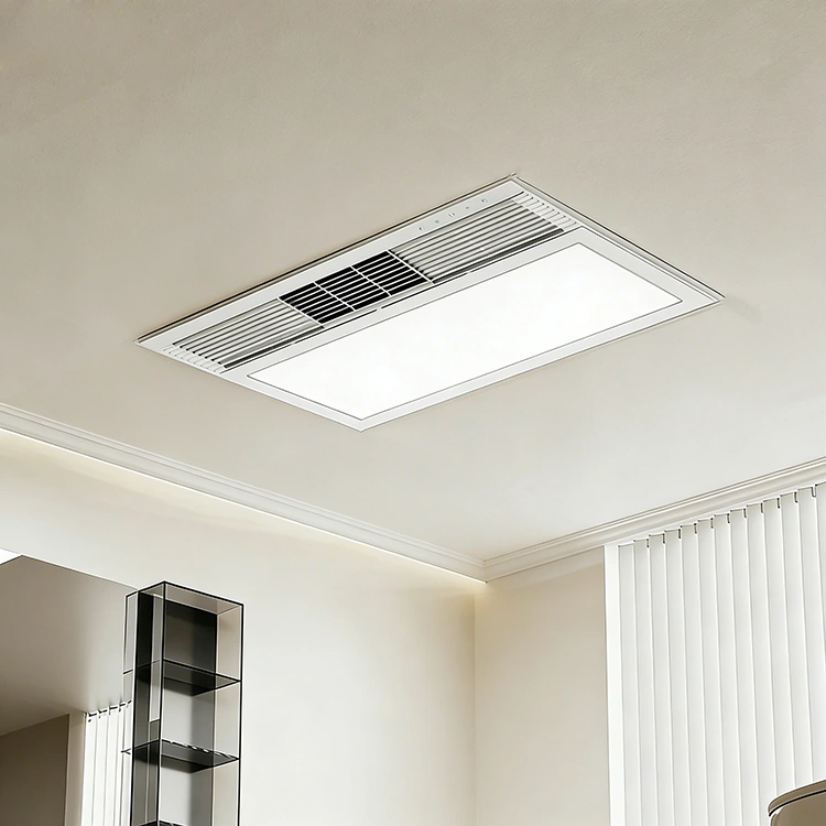 LED-valolla varustetun PTC-lämmittimen poistotuulettimen kokonaislämmitysteho on 2200 W kahdella säädettävällä asetuksella: alhainen ja korkea lämpö voidaan valita todellisten tarpeiden perusteella välttäen jatkuvaa korkeaa virrankulutusta. Se tarjoaa mukavan lämmityksen ja säästää energiaa ilman paineita sähkölaskuihin edes pitkäaikaisessa käytössä. Ilmanvaihtonopeus on 280 m³/h varustettuna 22 W:n silmäystävällisellä LED-valolla, joka tukee 3-väristä himmennystä ja muokattavia värejä.